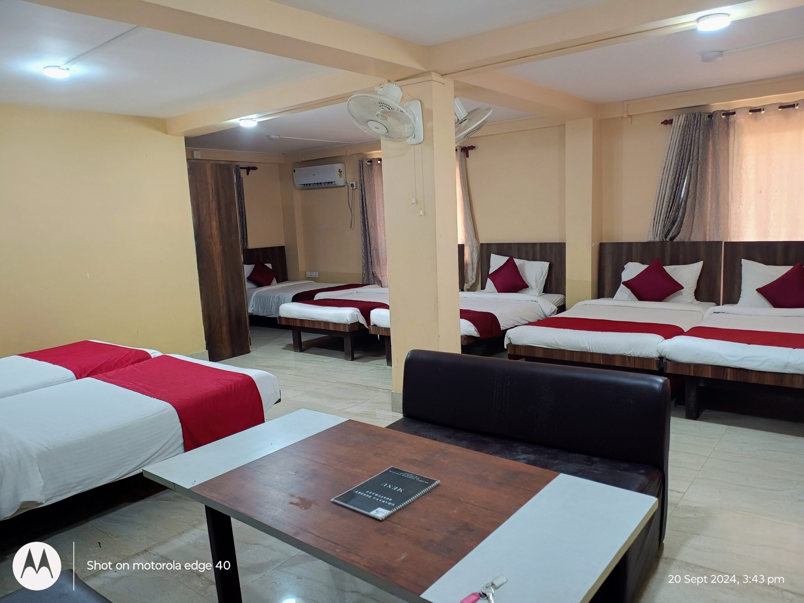 Family room 400 sqft separate 7 single bed with 2 separate washroom and 2 air conditioner smart tv tea coffee maker 7 – 8 person can be accommodated