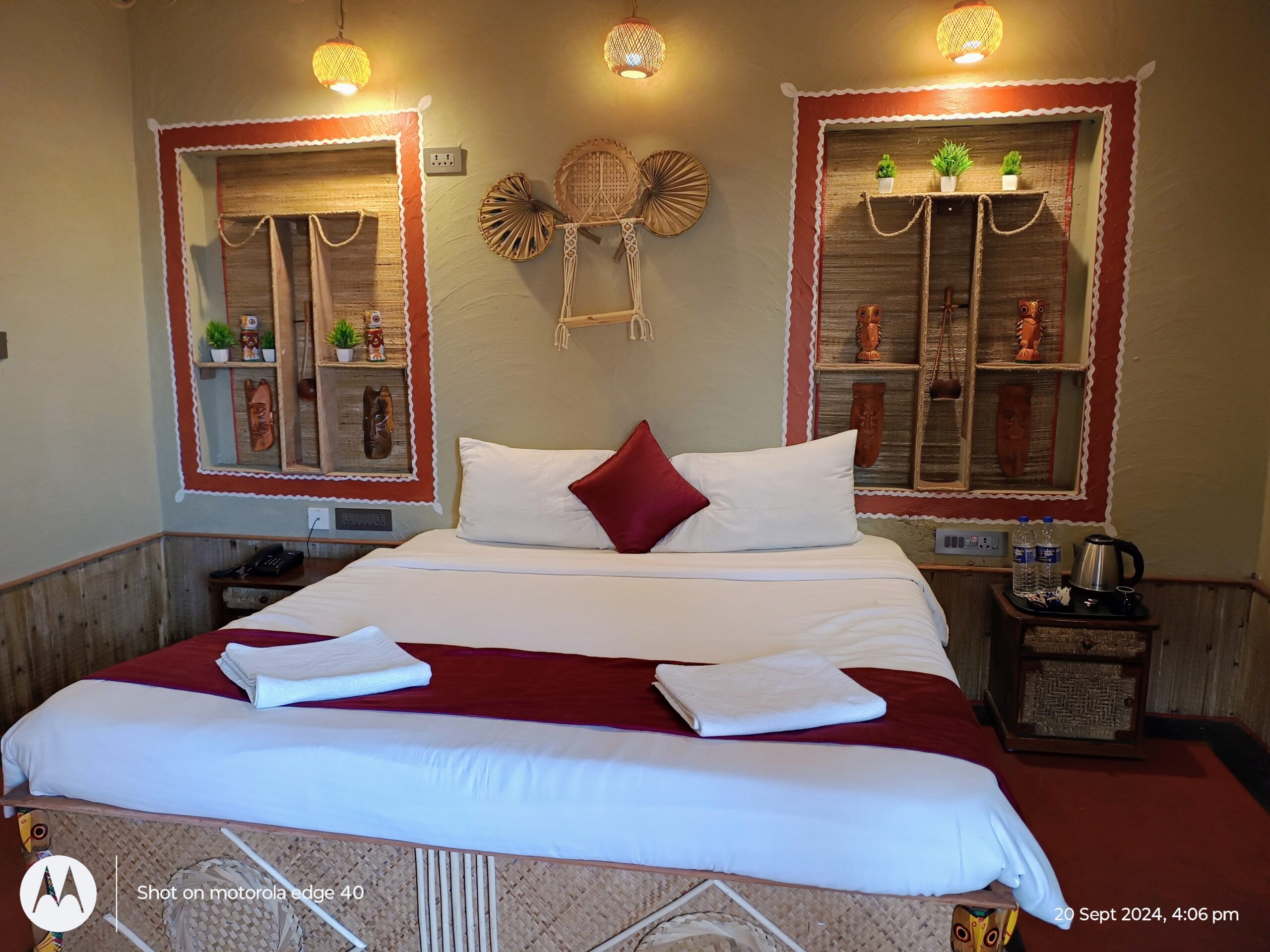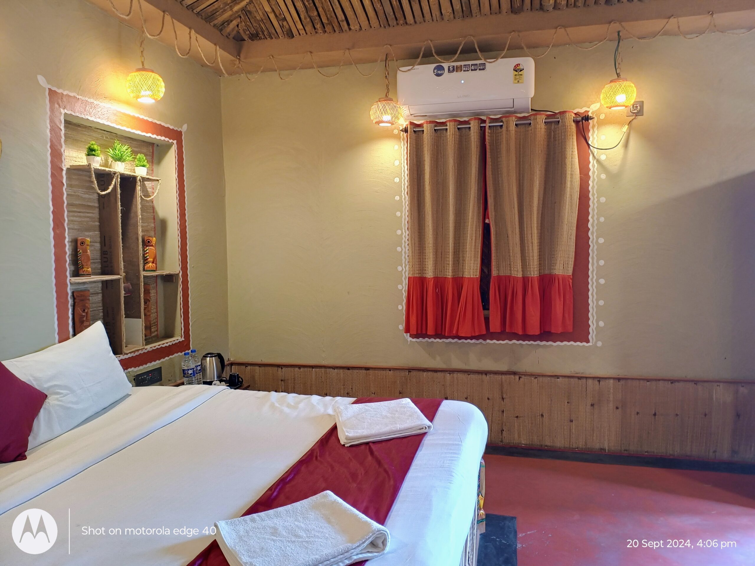 Mud house room 250 sqft 1 King size large bed with air conditioner smart tv tea coffee maker and also well decorated with rural environment village type 2+1 person can be accommodated